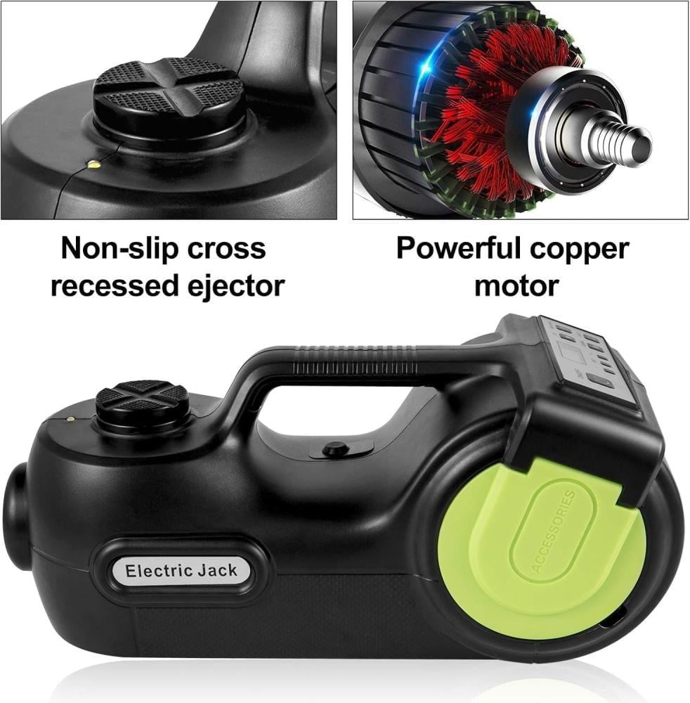 • فضل مساعد لإصلاح السيارات: كحد أقصى. السعة: 5.0 طن/11000 رطل. نطاق الرفع: 6.1-16.5 بوصة / 155-420 ملم. يمكن استخدام هذا الرافعة الهيدروليكية الكهربائية كمقبس قوي أو شاشة LCD وشاشة ضغط الإطارات مع مضخة نفخ الإطارات أو مصباح LED للعمل. علاوة على ذلك، فإن هذه المجموعة مجهزة بمفتاح ربط كهربائي. إنه مساعد جيد عند تغيير الإطارات في حالات الطوارئ على جانب الطريق وإصلاحات المرآب في المنزل.